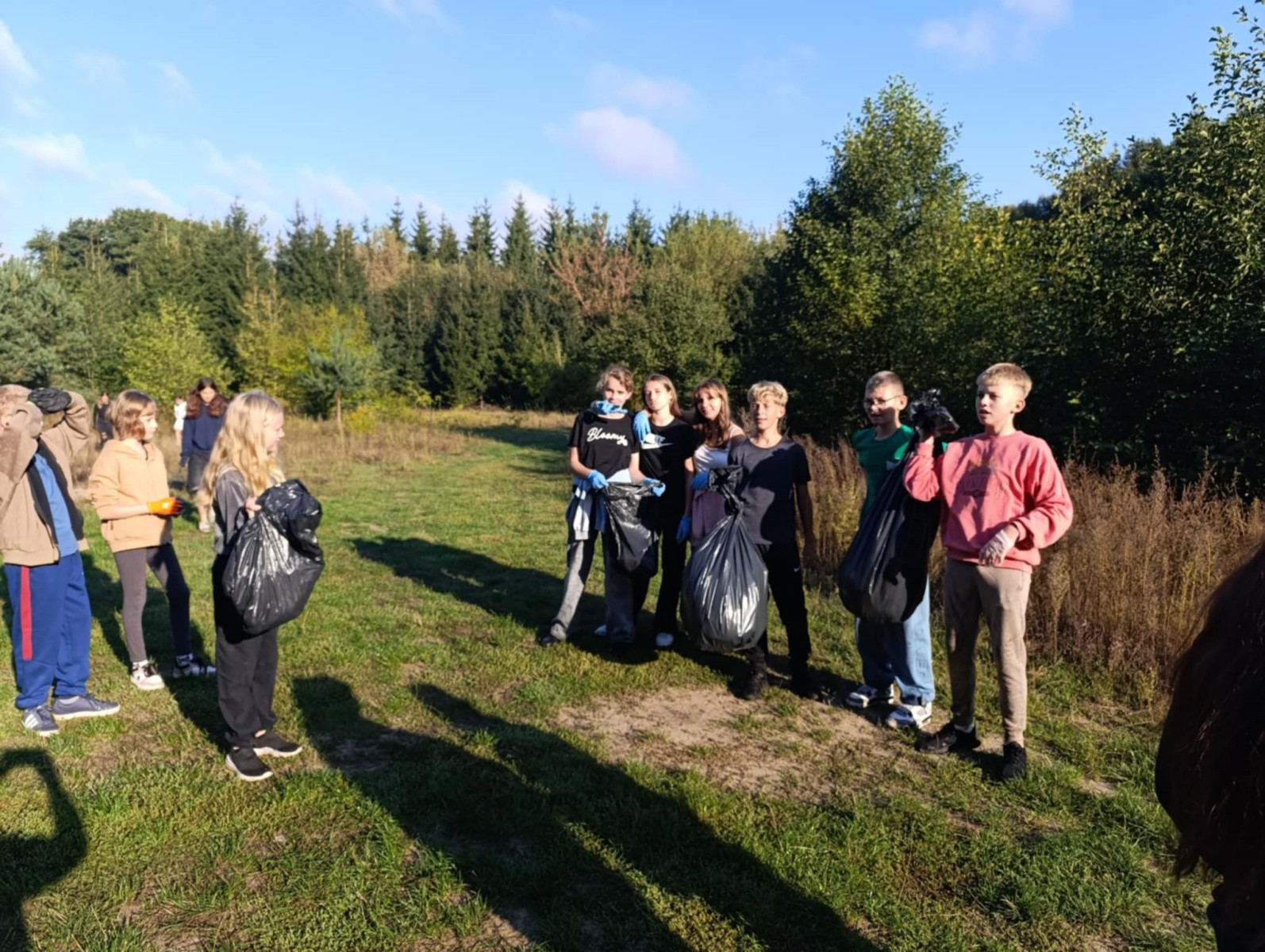 Zbieraliśmy śmieci wzdłuż brzegu rzeki Rawka, w lesie oraz wokół szkoły – każdy zakątek, który potrzebował pomocy, został objęty naszą opieką.