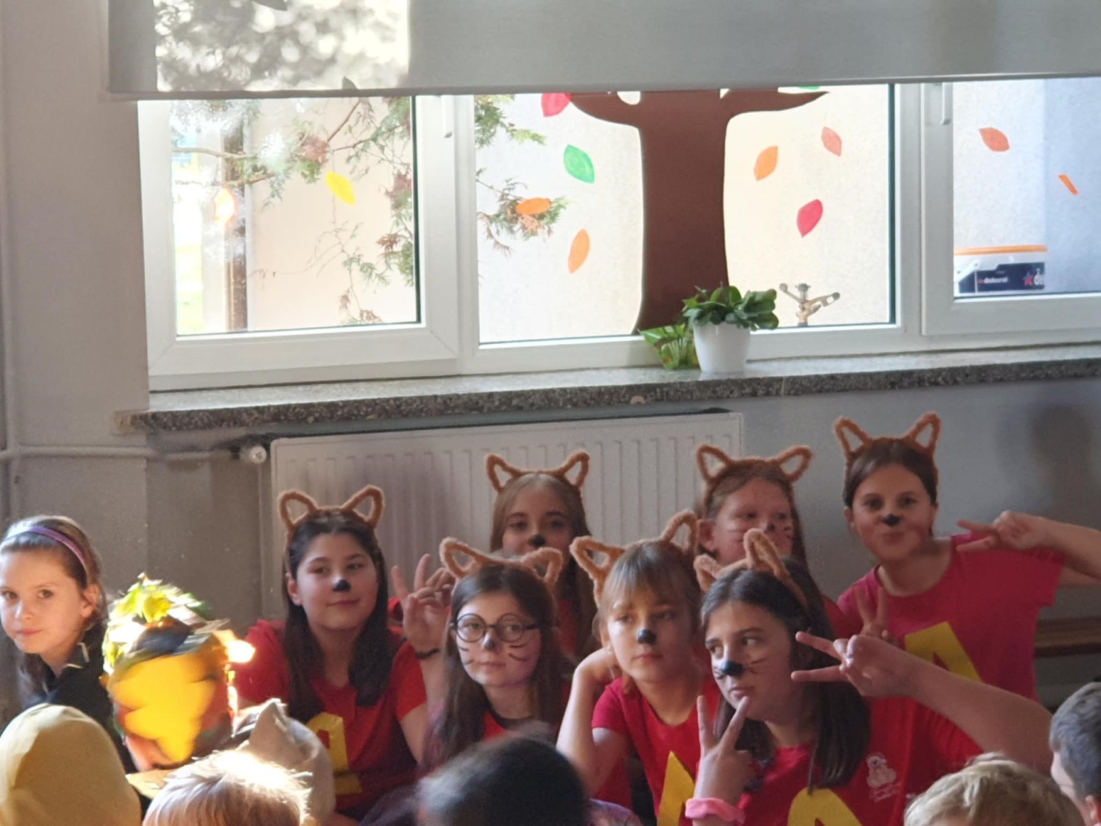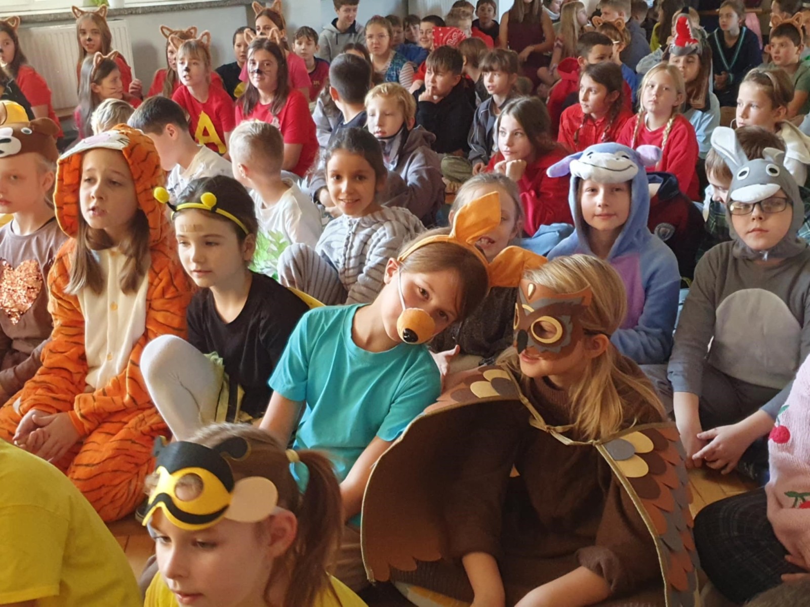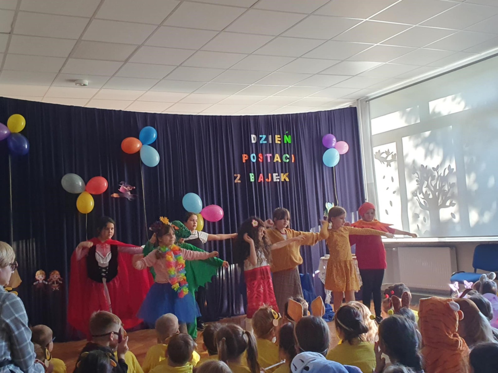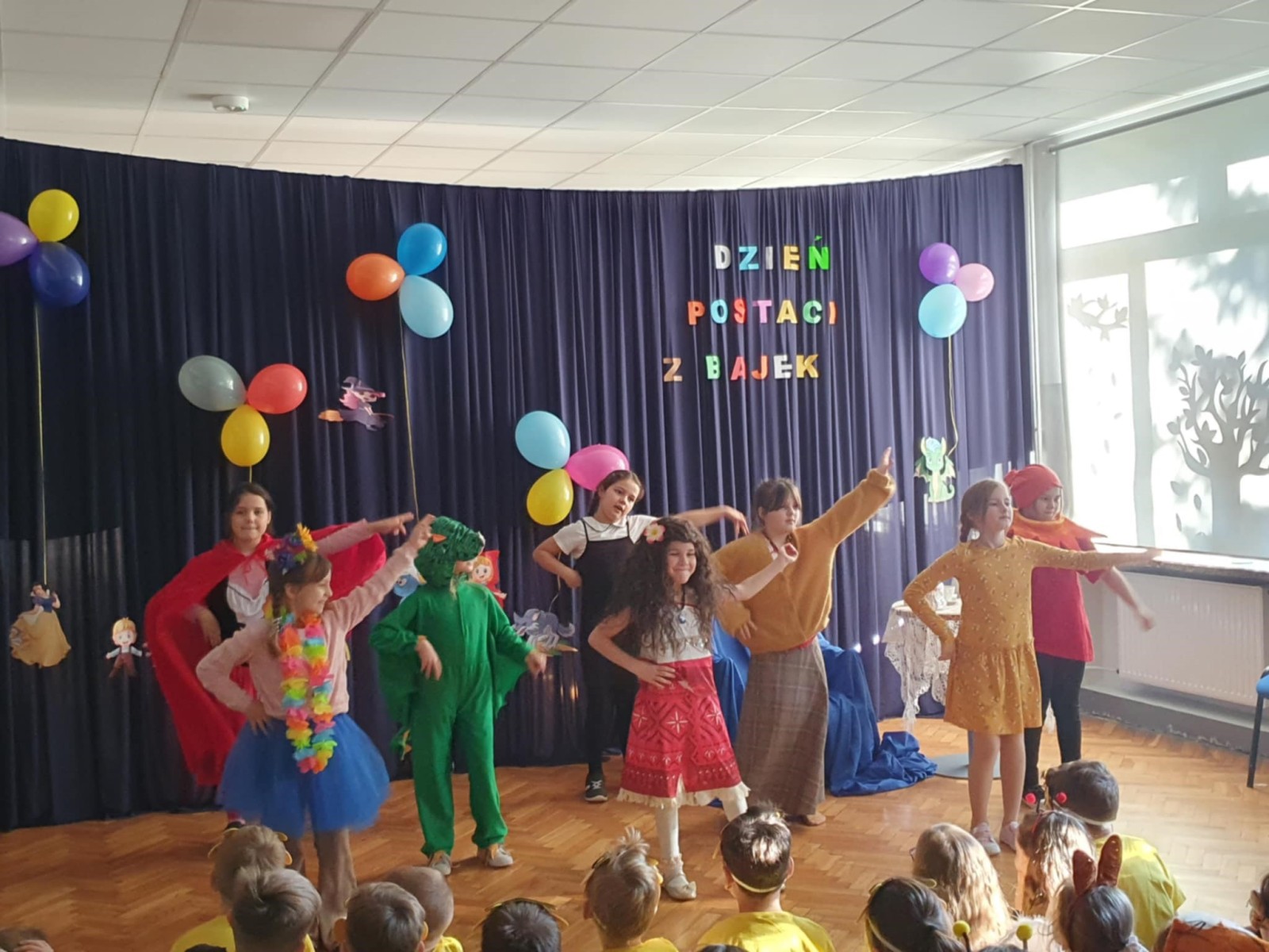 Na szkolnym korytarzu zaroiło się od bohaterów znanych i lubianych bajek – można było spotkać księżniczki, rycerzy, wróżki, czarodziejów oraz zwierzaki z bajkowego świata. Cała społeczność szkolna – dzieci i nauczyciele – wzięła udział w zabawie, przebierając się za swoje ulubione postacie