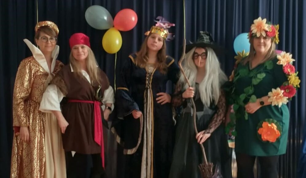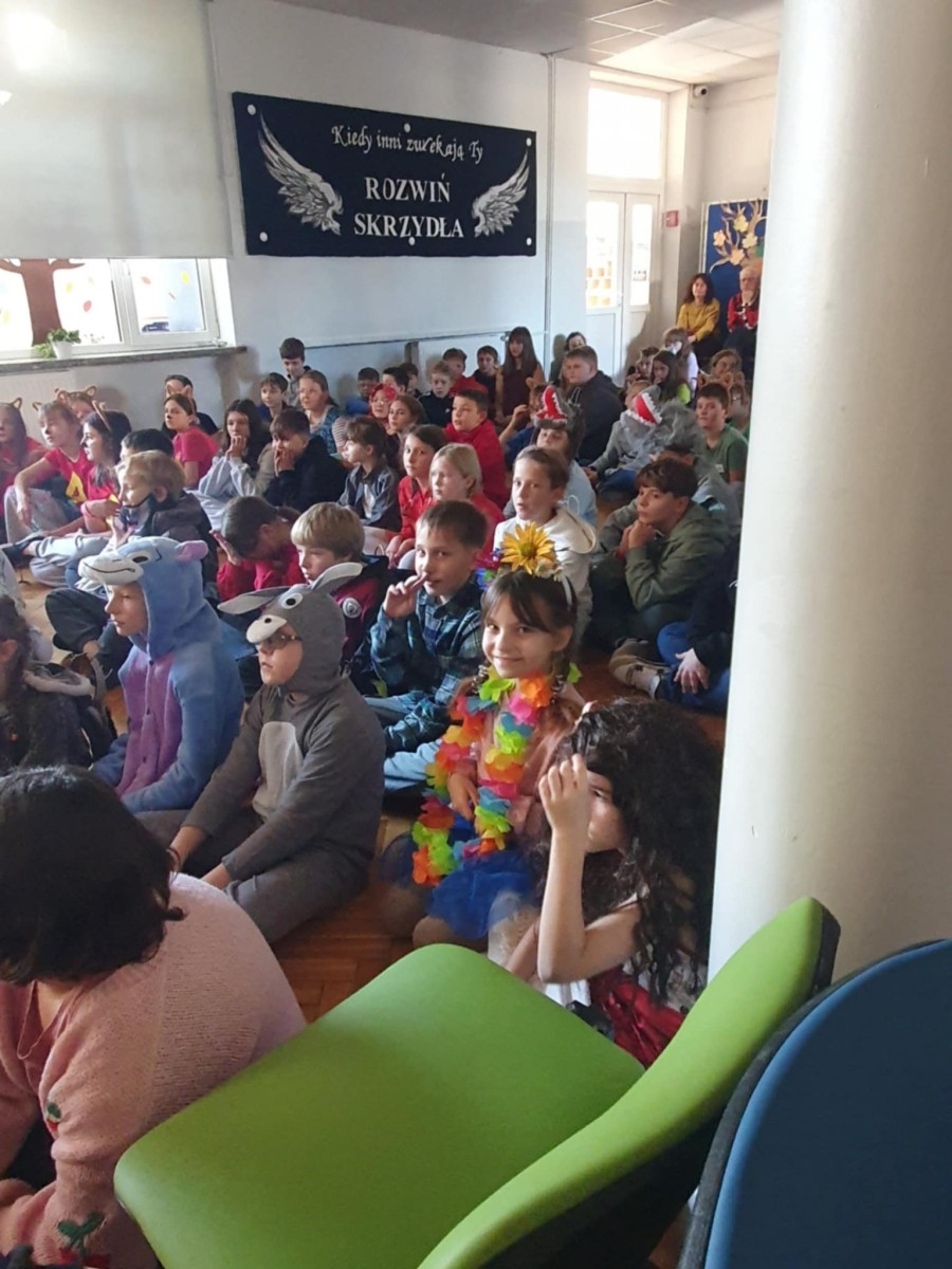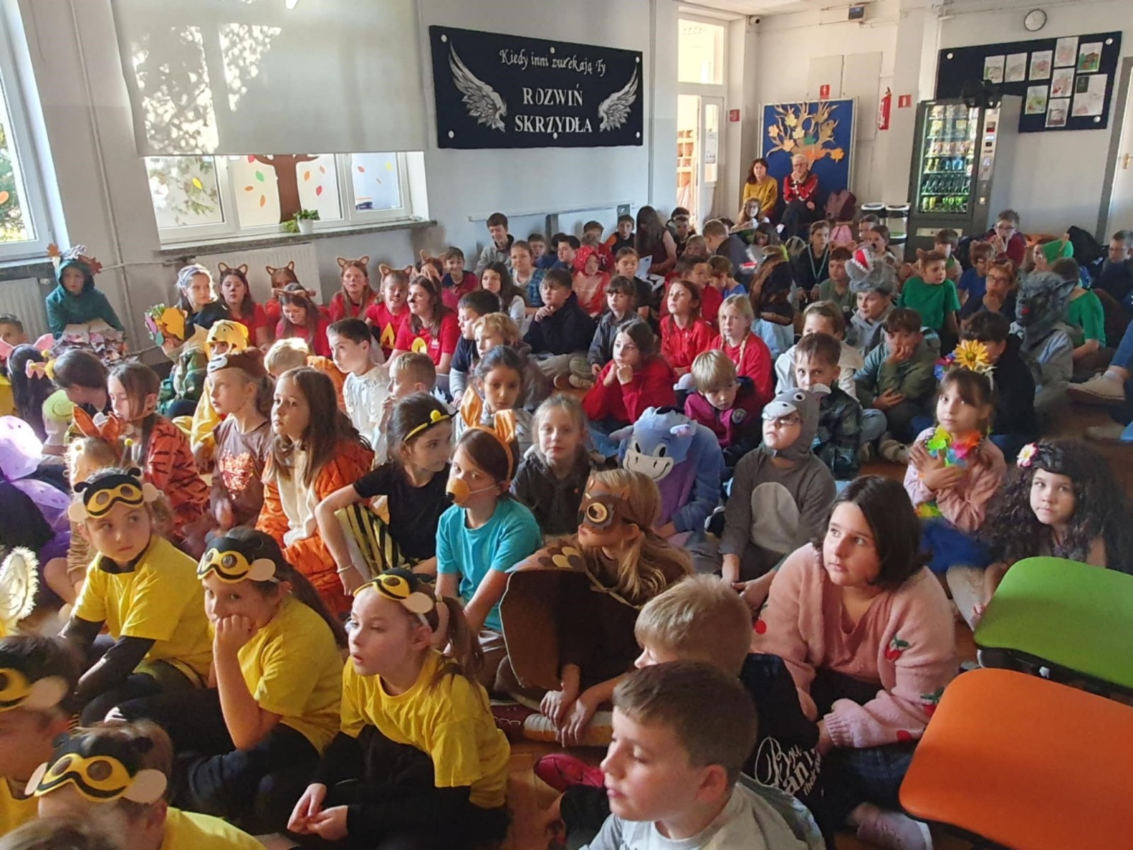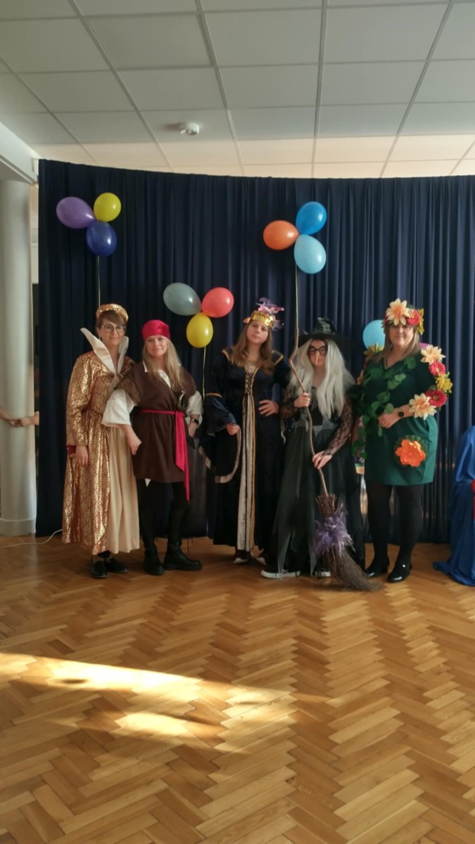 Na szkolnym korytarzu zaroiło się od bohaterów znanych i lubianych bajek – można było spotkać księżniczki, rycerzy, wróżki, czarodziejów oraz zwierzaki z bajkowego świata. Cała społeczność szkolna – dzieci i nauczyciele – wzięła udział w zabawie, przebierając się za swoje ulubione postacie