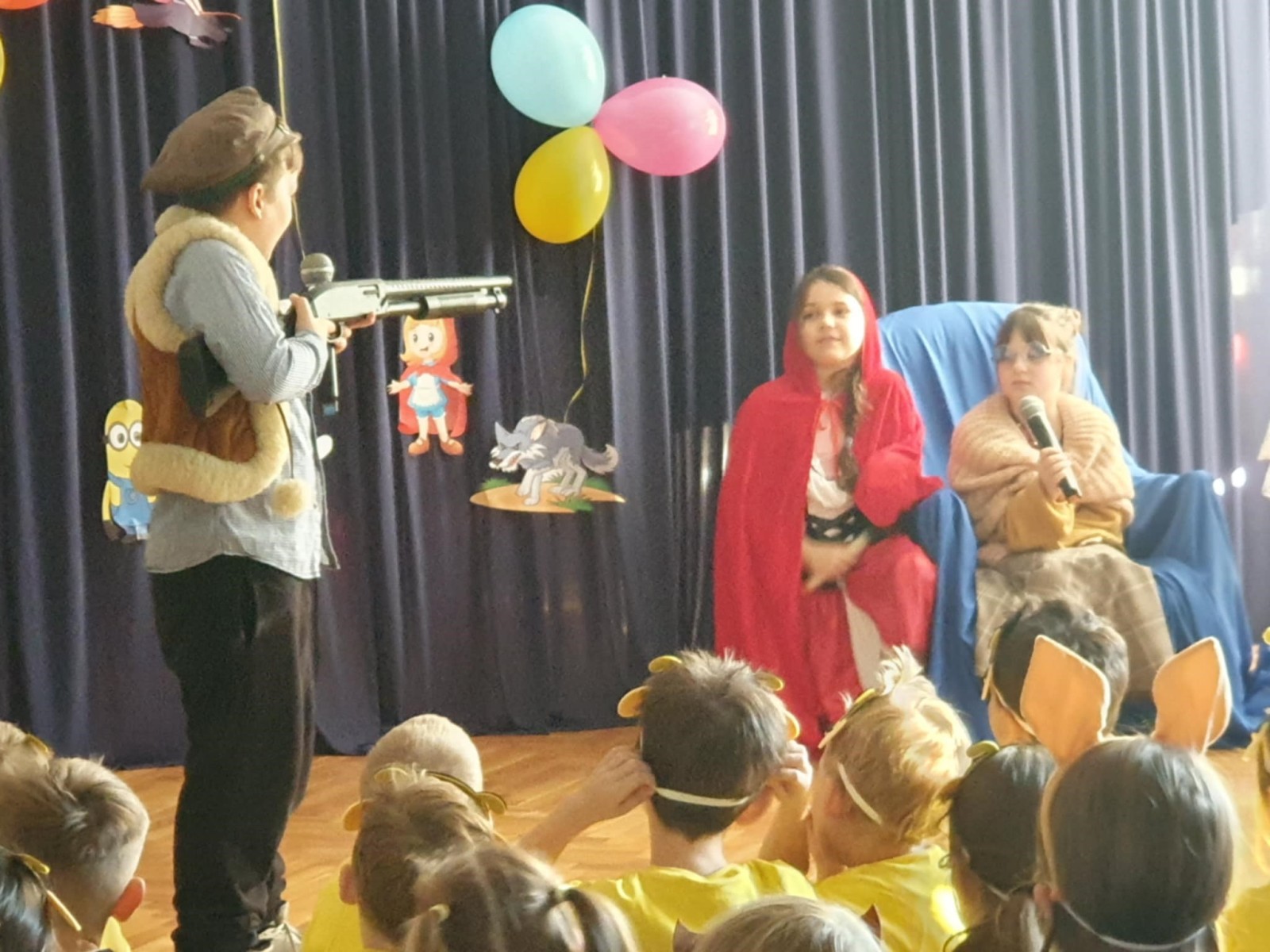 Z tej okazji uczniowie klasy 3 oraz 5 i 7 przygotowali przedstawienie pt. „Nie ma tego złego, co by na dobre nie wyszło”, które wprowadziło wszystkich w bajkowy nastrój.