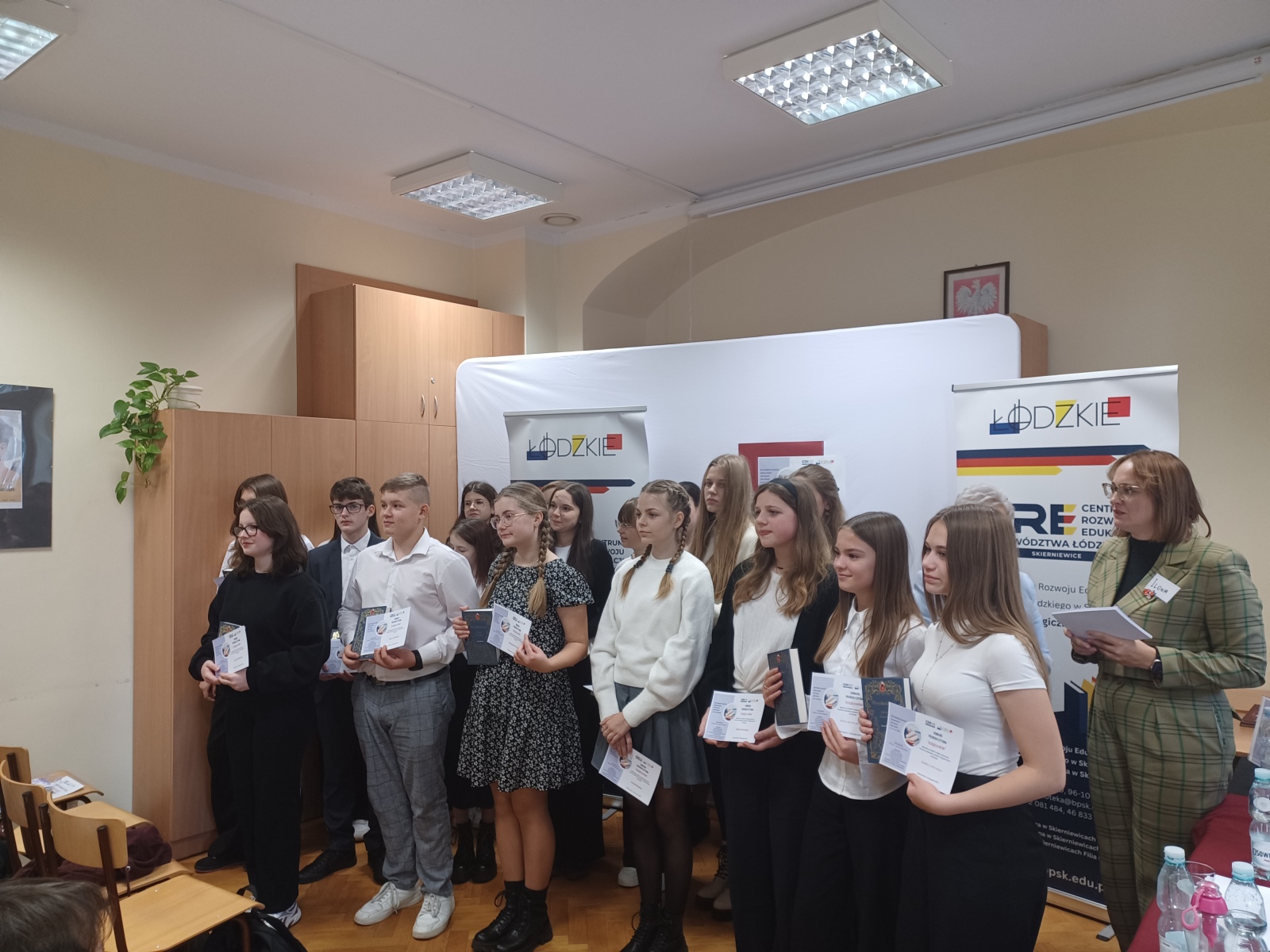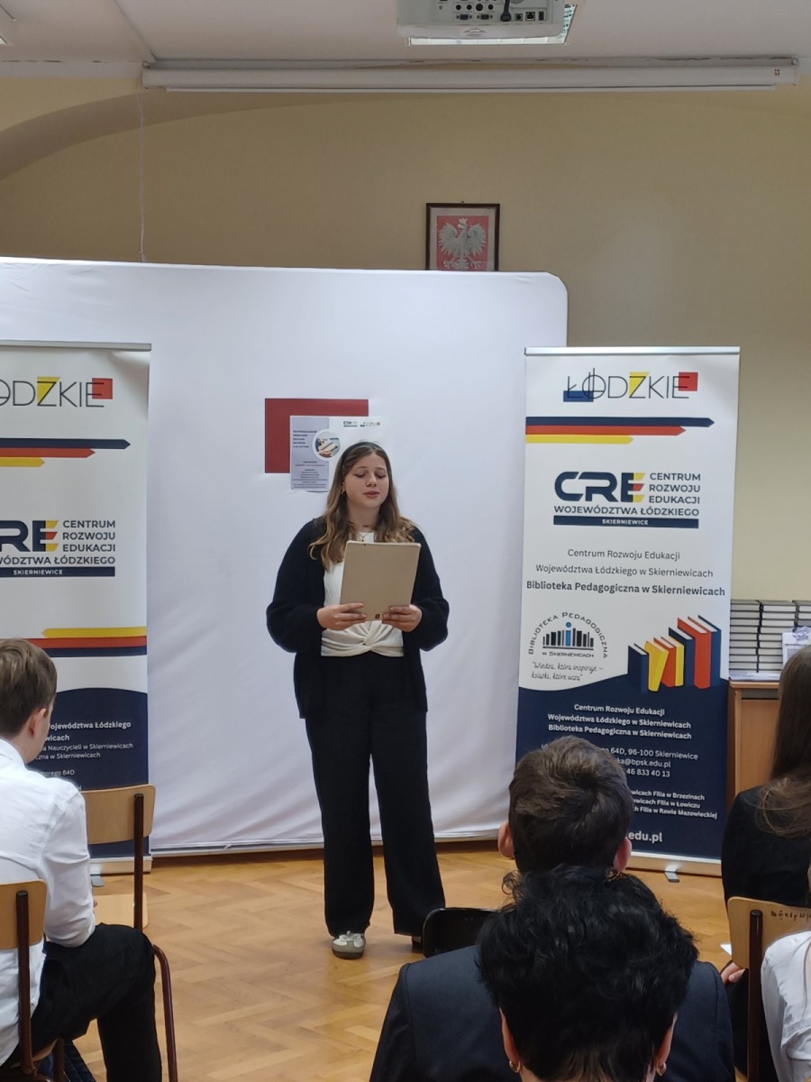Podczas konkursu dziewczęta zaprezentowały poezję Marii Pawlikowskiej-Jasnorzewskiej, zachwycając jury piękną interpretacją i kulturą słowa. Uczennica kl. 7a Maria Kamińska zakwalifikowała się do etapu wojewódzkiego, który odbędzie się w Zgierzu i będzie reprezentować naszą szkołę na szczeblu wojewódzkim ![]()