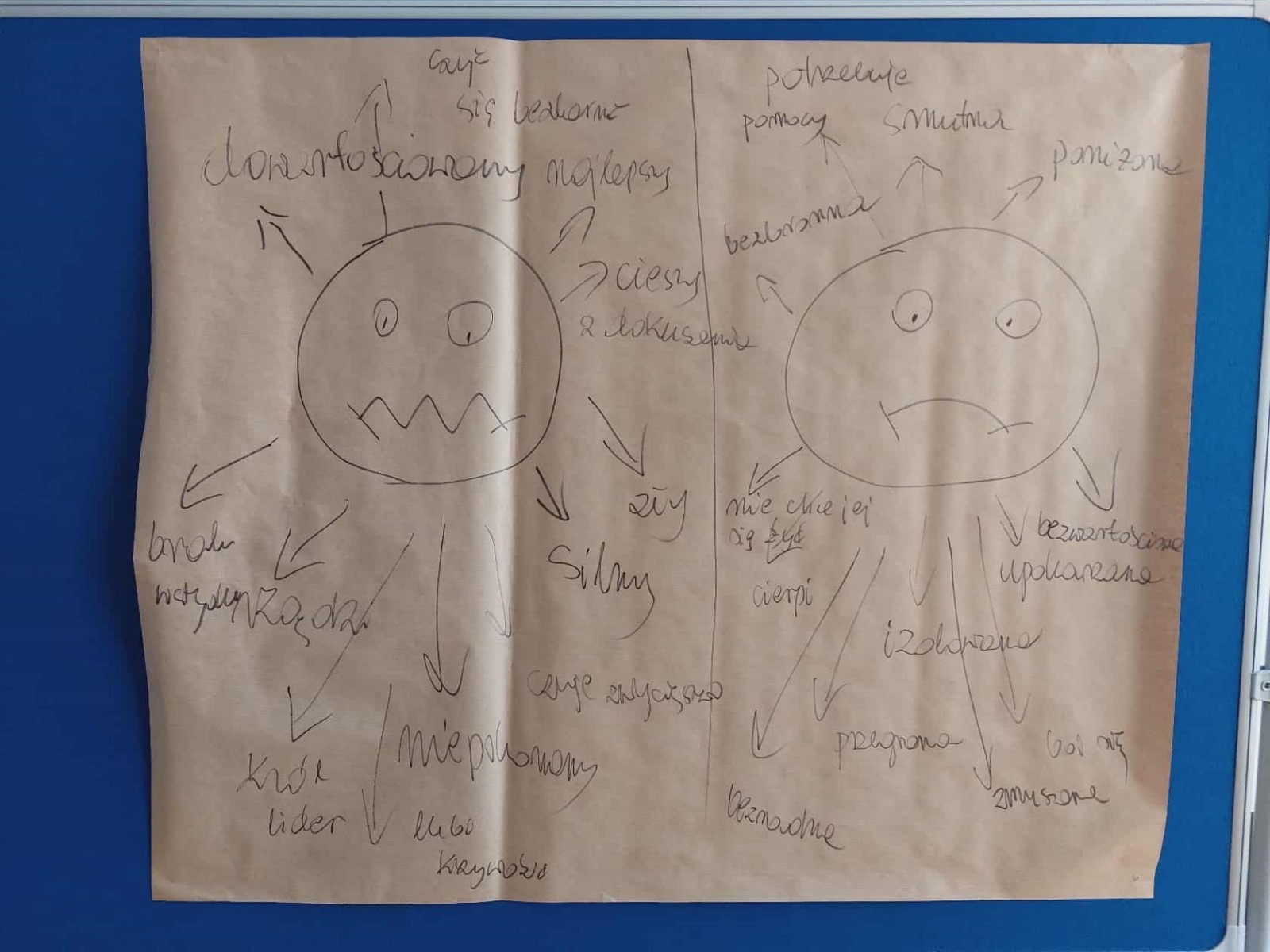 🛑 Na zakończenie zajęć uczniowie stworzyli plakat pod hasłem „Stop przemocy rówieśniczej”, wyrażając w ten sposób swój sprzeciw wobec agresji i swoją gotowość do wspierania innych.
