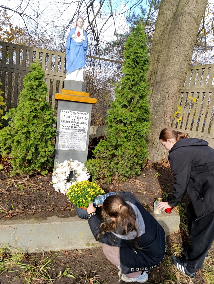 Uczniowie naszej szkoły uporządkowali miejsce upamiętniające tragiczną śmierć 16-letniej Haliny Łazęckiej i 14-letniego Romana Miehalskiego, zastrzelonych przez Niemców 27 maja 1943 roku.
