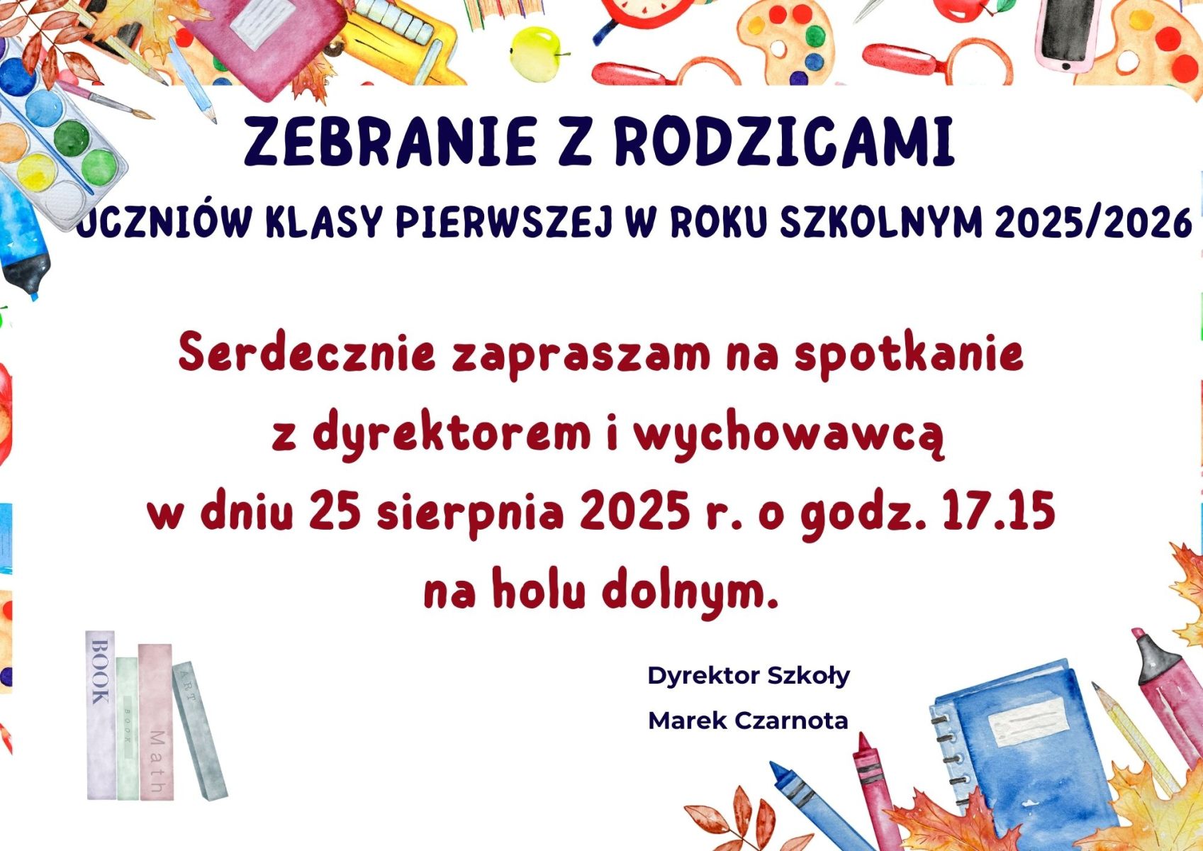Zebranie dla Rodziców uczniów klasy pierwszej w 2025/2026