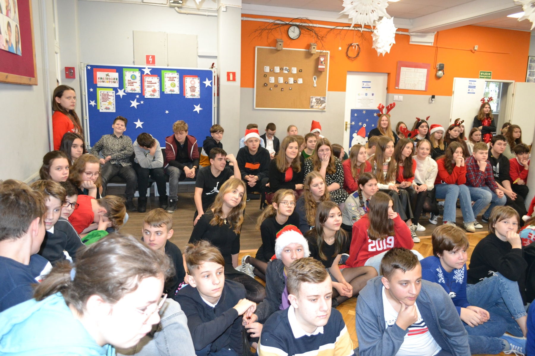 Tradycyjnie staramy się, aby był wyjątkowy i niezapomniany. Zawsze planujemy klasowe spotkania przedświąteczne, szkolne kolędowanie oraz przedstawienie Jasełek. W tym roku ten punkt programu przygotowali nauczyciele. O tym wydarzeniu zrobiło się głośno, a relację opublikował I love SKC. Czy to był dobry pomysł? Oceńcie sami. W tym dniu także przyjęliśmy od Hufiec ZHP Skierniewice Światełko Betlejemskie. Szkolne kolędowanie, w czasie którego każda klasa wykonuje przygotowaną kolędę lub świąteczną piosenkę, także wzbudziło mnóstwo radości. Zapraszamy do obejrzenia zdjęć z wydarzeń w dniu 22 grudnia.
