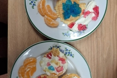 Uczniowie klasy 6 A kontynuują podróż kulinarną. Dzisiaj dotarli do stacji „Deser”. Pomysłów na jego wykonanie było kilka. Galaretka z dodatkami, ozdobione babeczki na słodko, smoothie bananowe, a może owocowy kubek?