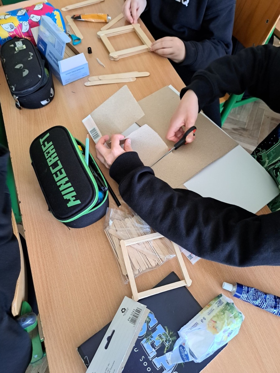 Technicznie….praktycznie Uczniowie klasy 4 wykonują przyborniki z drewna. Pomysł, precyzja, skupienie…. Praca wykonana.